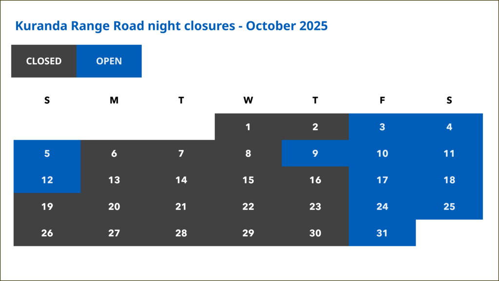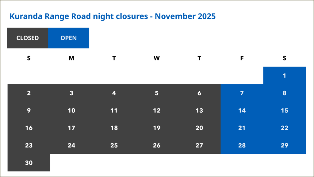 Road users are advised an additional, temporary lane closure will be present on Kuranda Range Road.