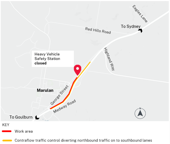 The northbound Heavy Vehicle Safety Station will be closed for the duration of the work.
